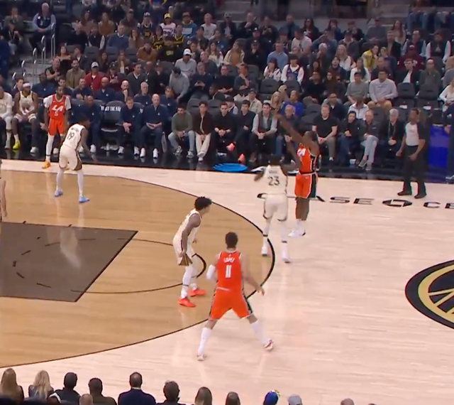 但真的就是,第一节3分45秒的时候,格林被霍福德换下,当时两队比分21-17。