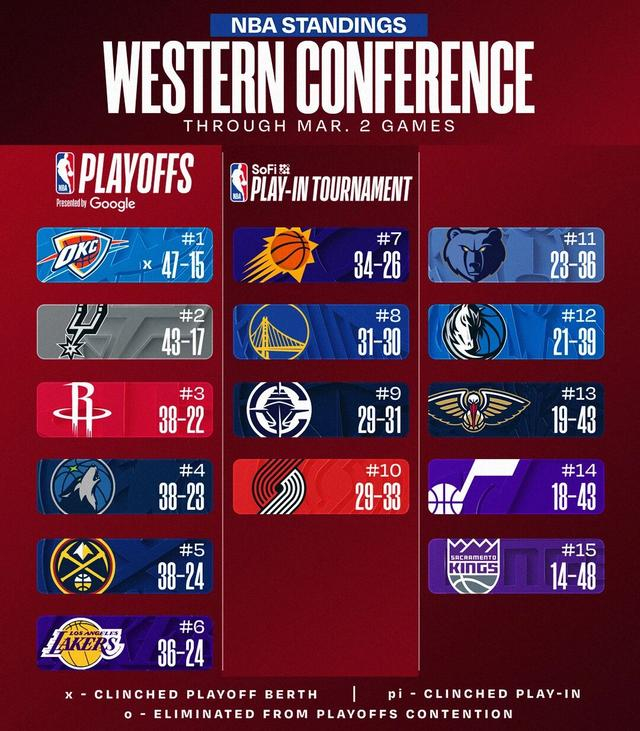 哦,对了,现在的西部第8正是勇士。