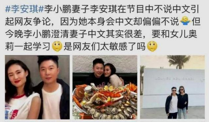 网友们之所以会发现李安琪会说中文,还是因为她在接受采访的时候说出了流利的中文,一时之间很多网友都吐槽她,质问为什么她和儿女对话不用中文。对此李安琪没有发表什么看法,或许在她内心当中还是希望自己的儿女做一个美国人,但是李小鹏作为一个中国人和一个中国的奥运冠军,他很不应该让自己的儿女接受这种美国式的教育。