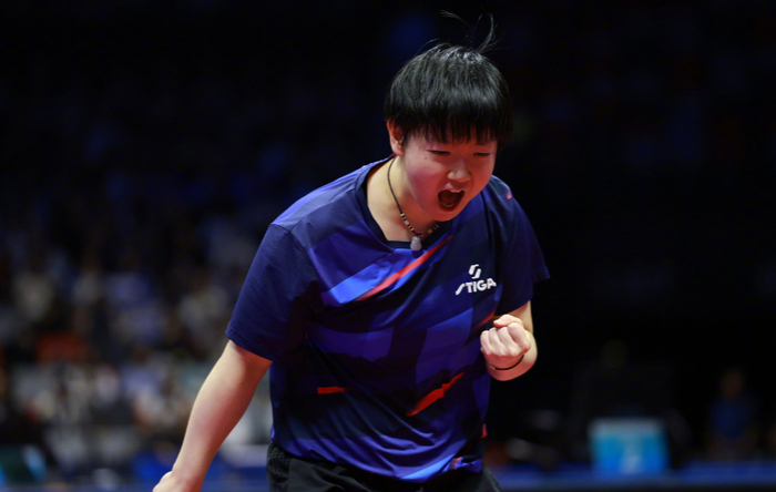 王曼昱得分,迎来冠军点,但是孙颖莎顶住压力得分,挽救了一个赛点,追到12平。王曼昱再次得分,而孙颖莎顽强地再次挽救一个赛点,来到13平。孙颖莎搏杀失误,王曼昱又迎来一个赛点,但是孙颖莎再次展现韧性,挽救第三个赛点。孙颖莎这时候连得2分,以16比14惊险拿下第五局,从而死里逃生。