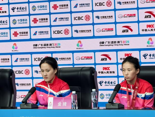 图为陈芋汐(右)/掌敏洁在赛后新闻发布会上。新华社记者马思嘉摄